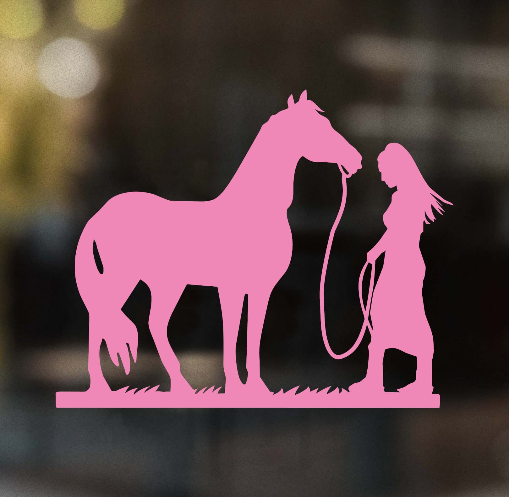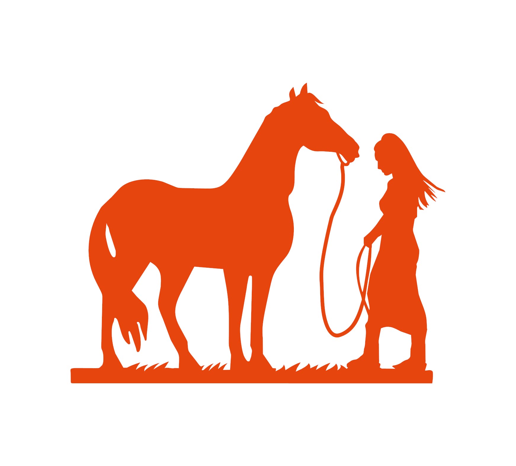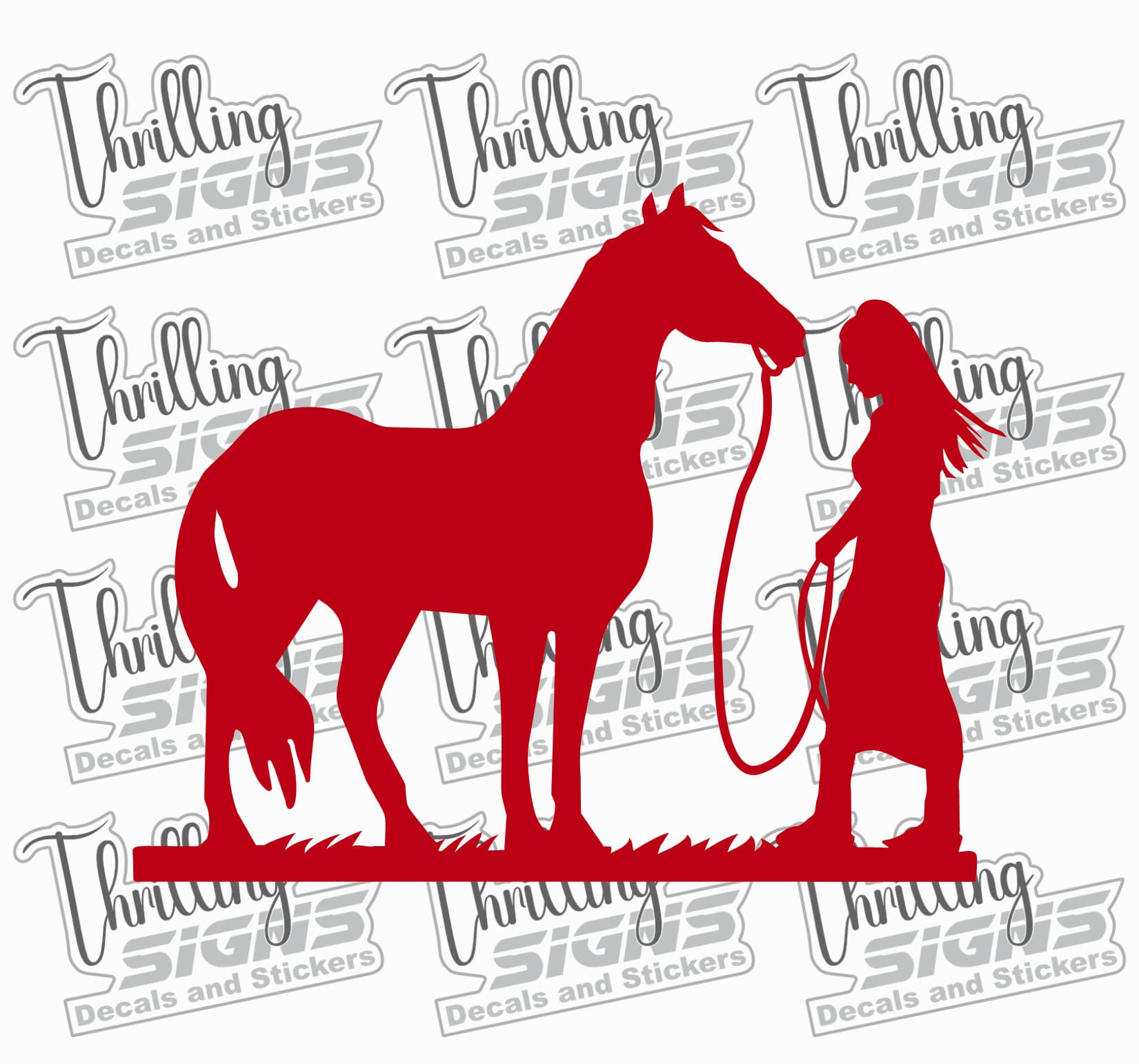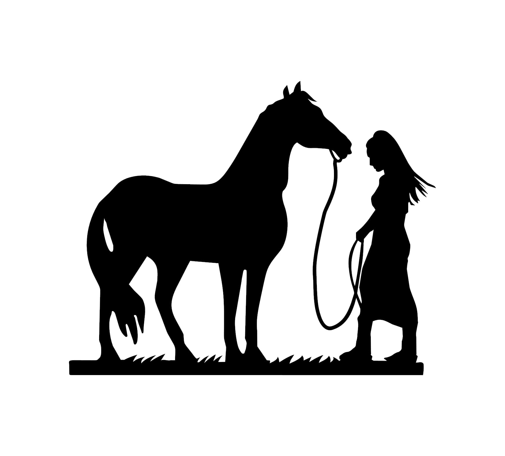 There is a unique language spoken between a girl and her horse one of trust, respect, and freedom. This Girl and Horse Decal captures that spirit perfectly with a flowing, artistic silhouette. The design shows a girl with wind-swept hair walking alongside her horse, lead rope in hand, over a natural grassy base.