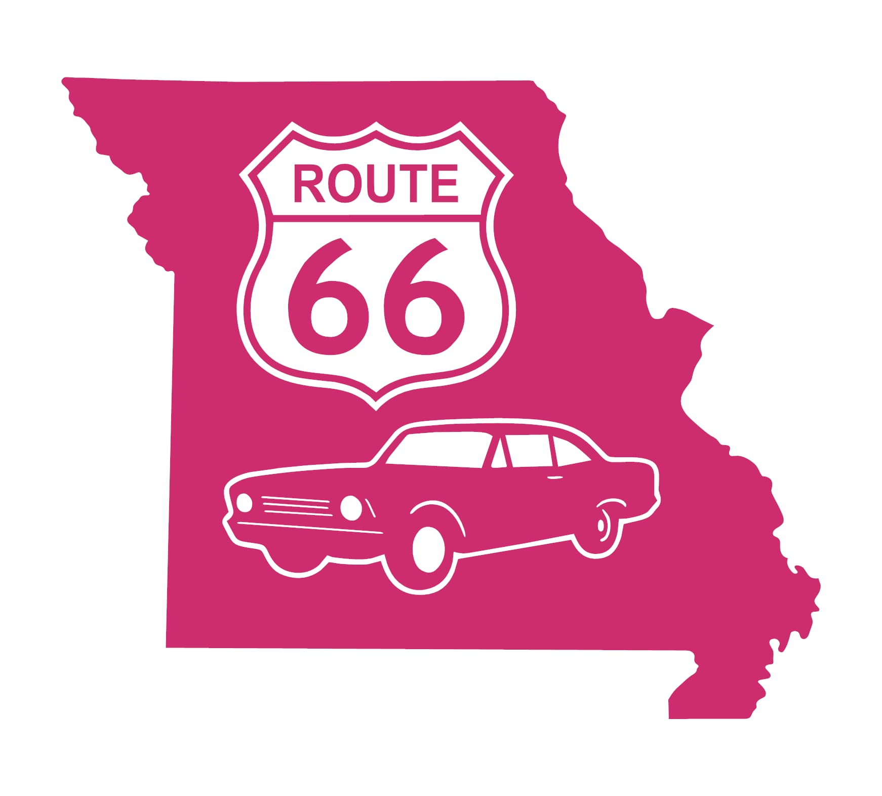 Get your kicks on the Mother Road! Our Missouri Route 66 Decal celebrates the historic highway with a bold state silhouette, the iconic 66 shield, and a vintage muscle car. Precision-cut from premium, weather-resistant vinyl, it’s the ultimate tribute for road trippers and classic car lovers cruising through the Show-Me State.